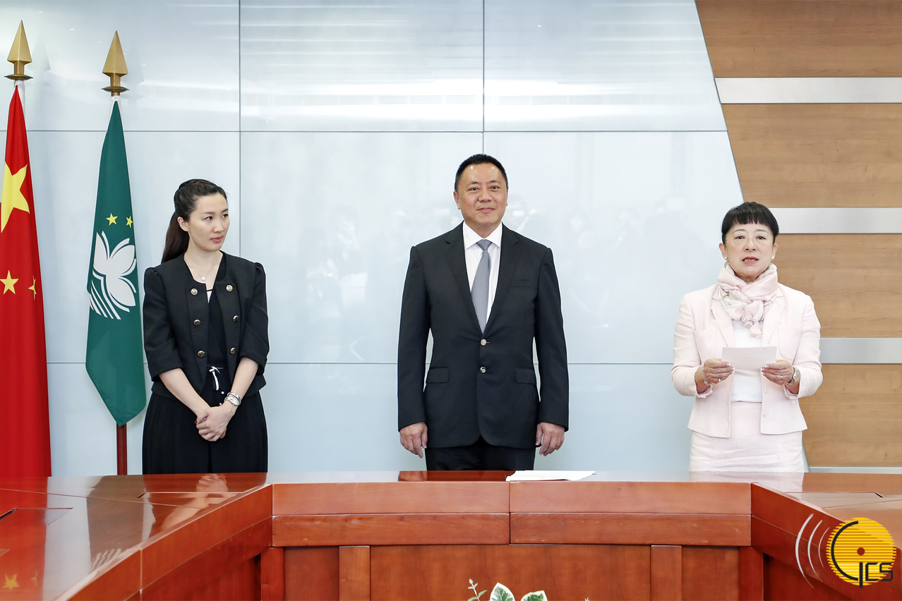 • The Secretary for Economy and Finance, Mr Leong Vai Tac, administers the swearing-in ceremony of the President of the Administrative Committee of the Macao Trade and Investment Promotion Institute, Ms Irene Va Kuan Lau.