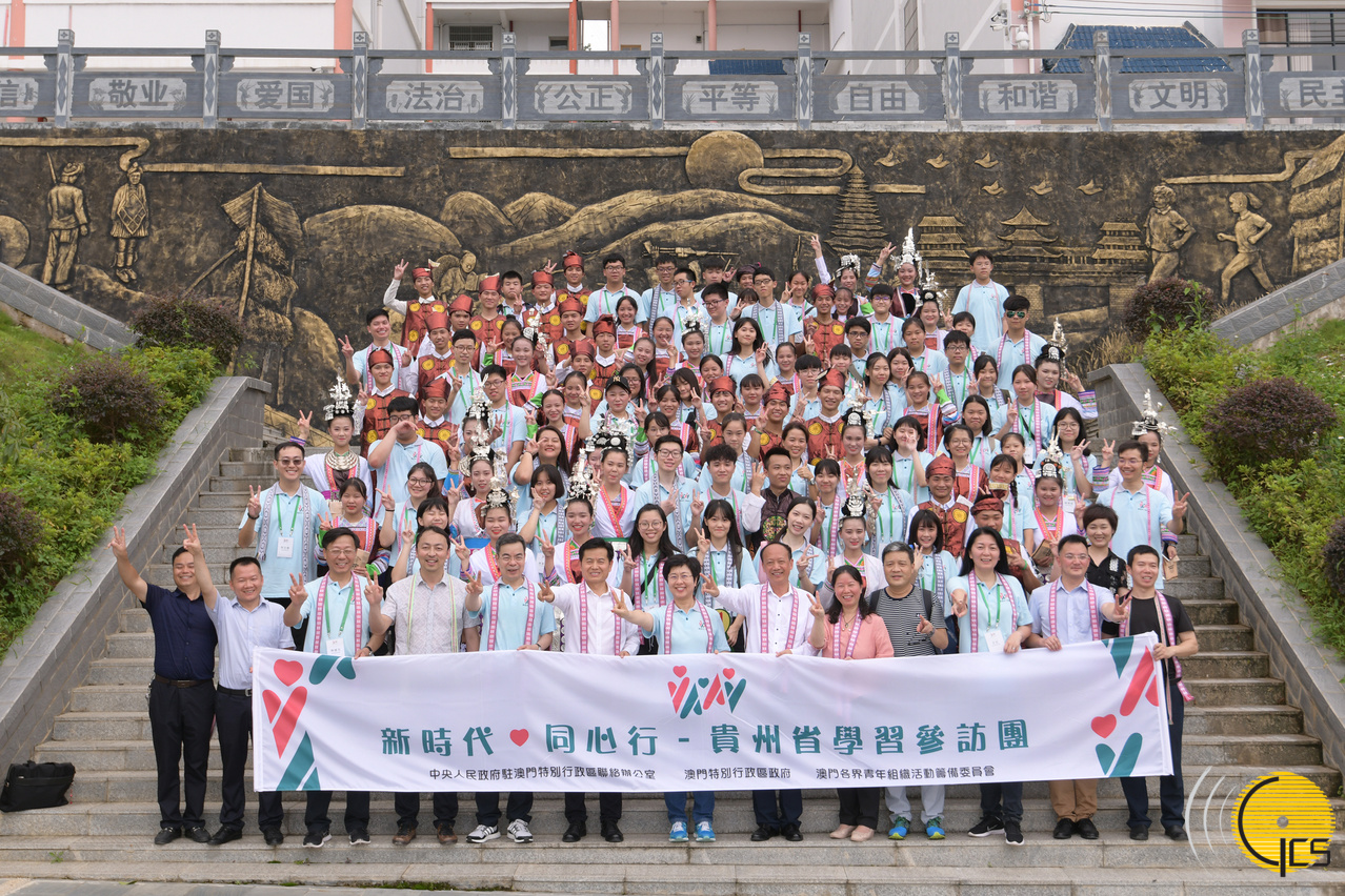 • A group photograph between members of the Macao delegation to Guizhou Province and students of the Congjiang County Second National Senior High School.