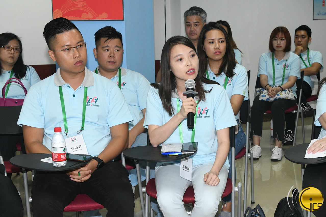 • A representative of the Macao youth delegation to Guangdong Province speaks during an exchange session with representatives of the Guangdong Youth Federation.