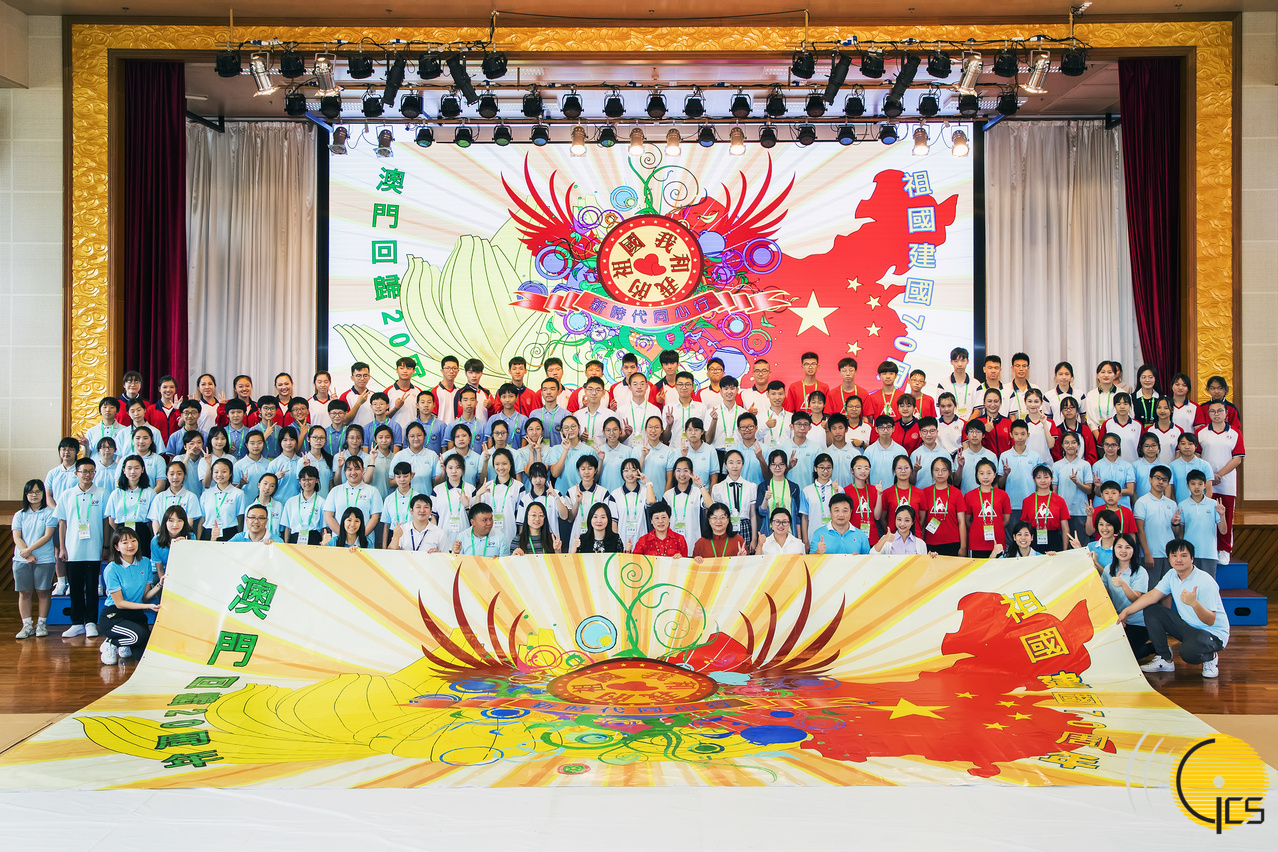 • Teachers and students from the five mainland provinces that Macao youth delegations visited recently pose for a group photograph while visiting a school in Macao in a school in Macao.