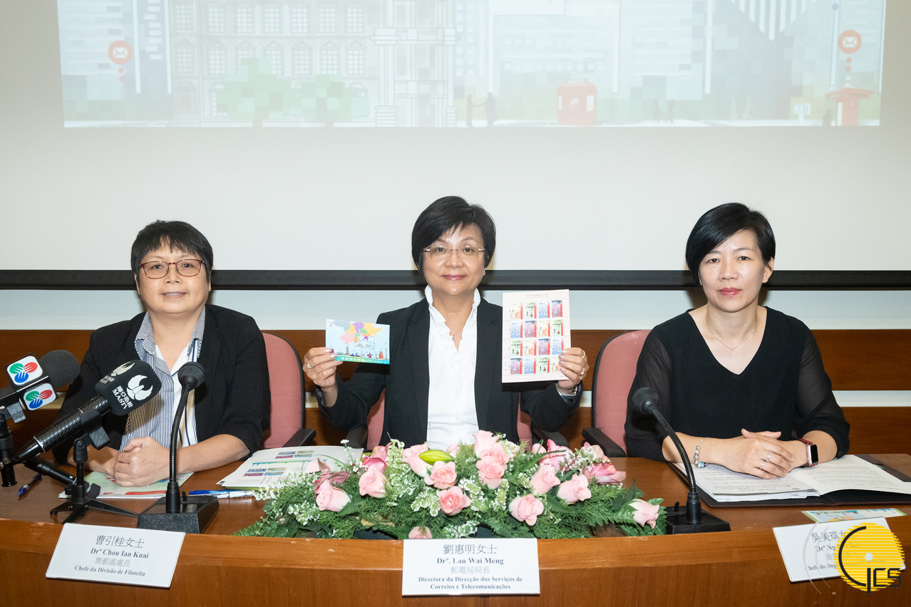 The Macao Post and Telecommunications Bureau holds a press conference on the issuance of three stamp sets: "Guangdong-Hong Kong-Macao Greater Bay Area"; "Guangdong-Hong Kong-Macao Greater Bay Area (Label Stamp)"; and "70th Anniversary of the Founding of the People's Republic of China".