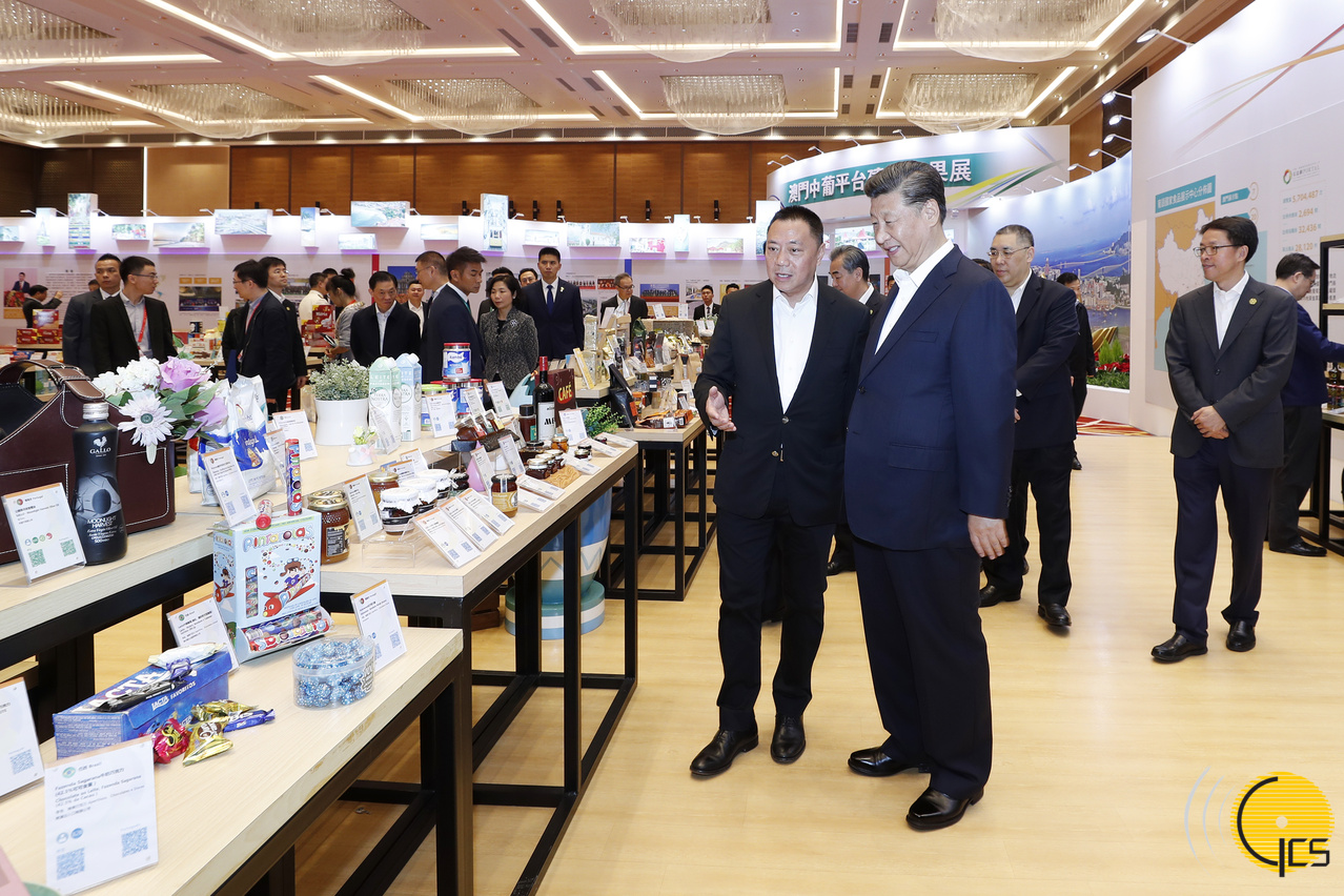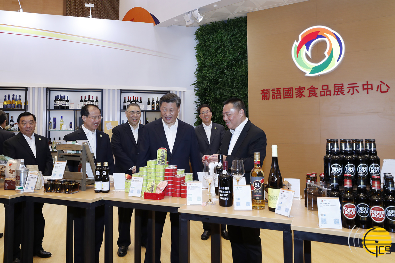 • President Xi Jinping tours the Portuguese-speaking Countries Food Products Exhibition Centre.