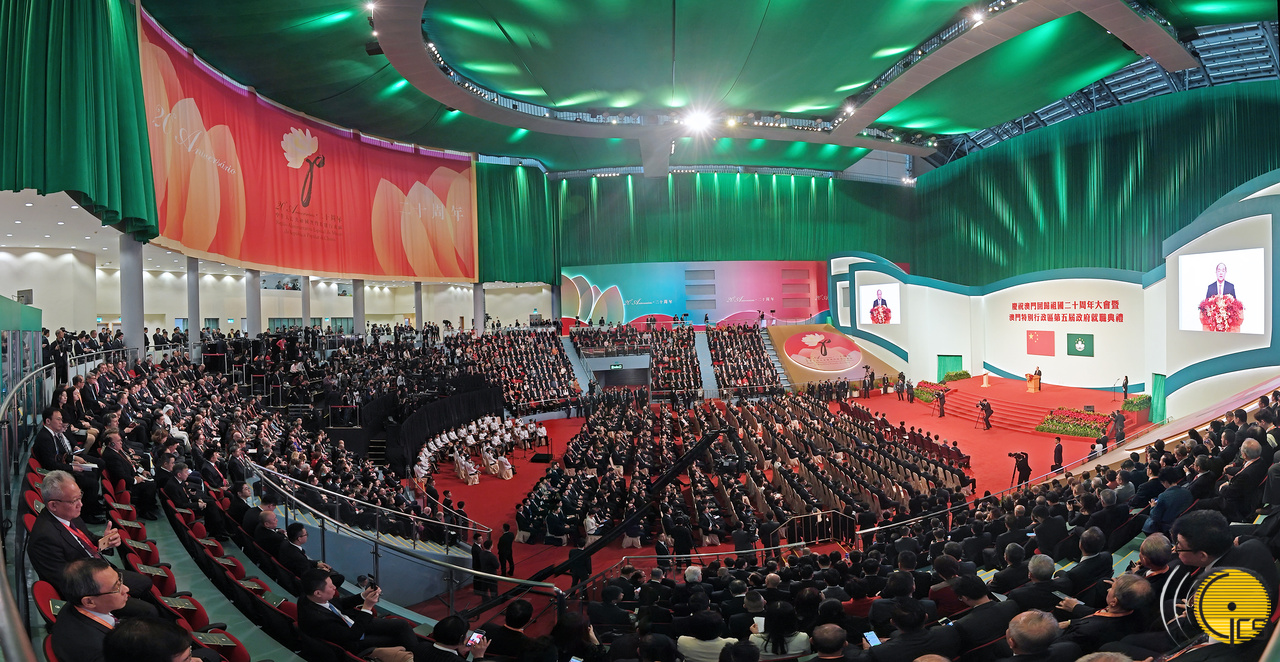 The 20th Anniversary Celebration of Macao’s Return to the Motherland and the Inauguration Ceremony of the Fifth-term Government of the Macao Special Administrative Region is held at the East Asian Games Dome.