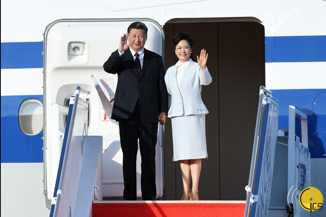 President Xi Jinping and his wife Madame Peng Liyuan arrive in Macao on a chartered flight.