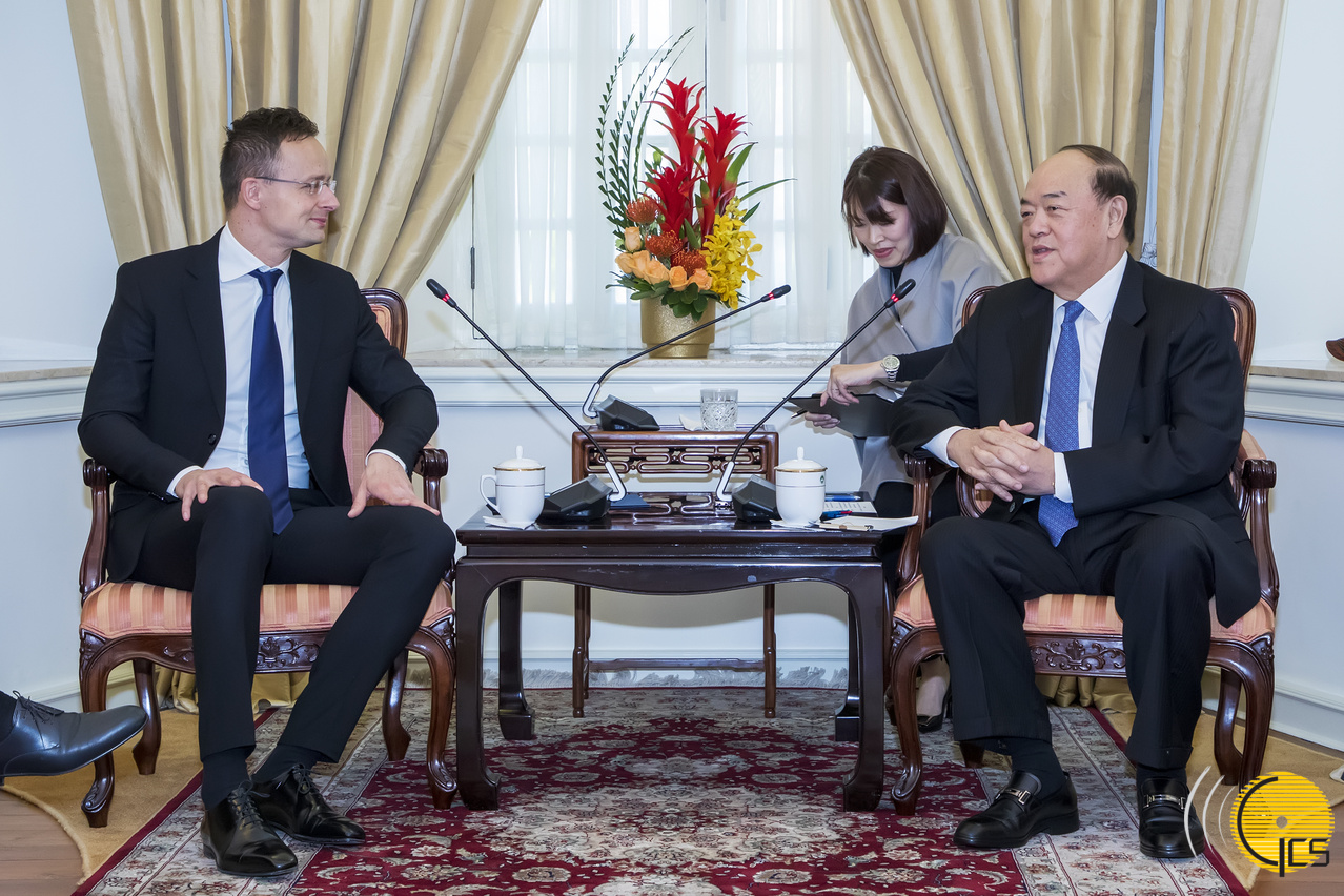 The Chief Executive, Mr Ho Iat Seng, meets with the Minister of Foreign Affairs and Trade of Hungary, Mr Péter Szijjártó, at Santa Sacha in Macao.