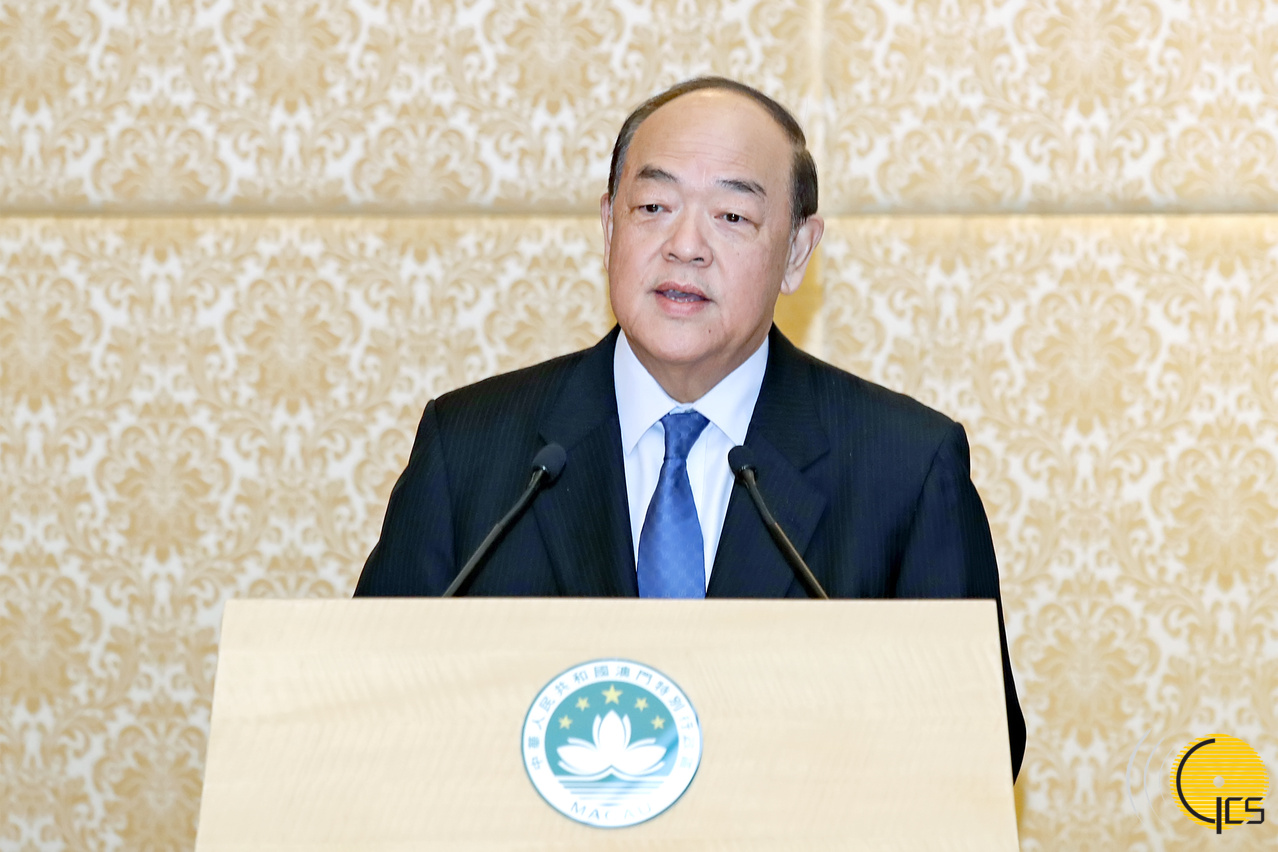 • The Chief Executive, Mr Ho Iat Seng, speaks at a luncheon for representatives of local Chinese news organisations.