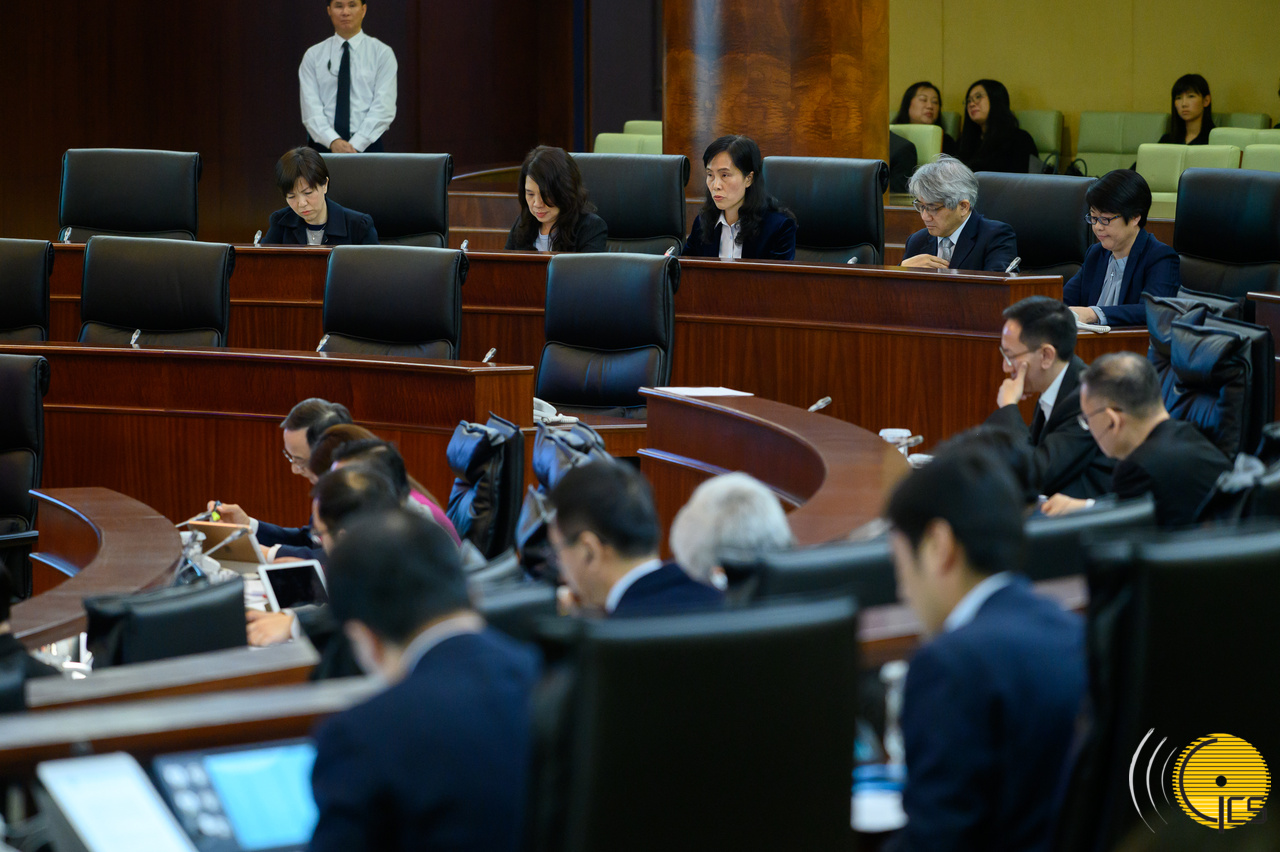 The Secretary for Social Affairs and Culture, Ms Ao Ieong U, takes questions raised by members of the Legislative Assembly during a plenary session at the Assembly.