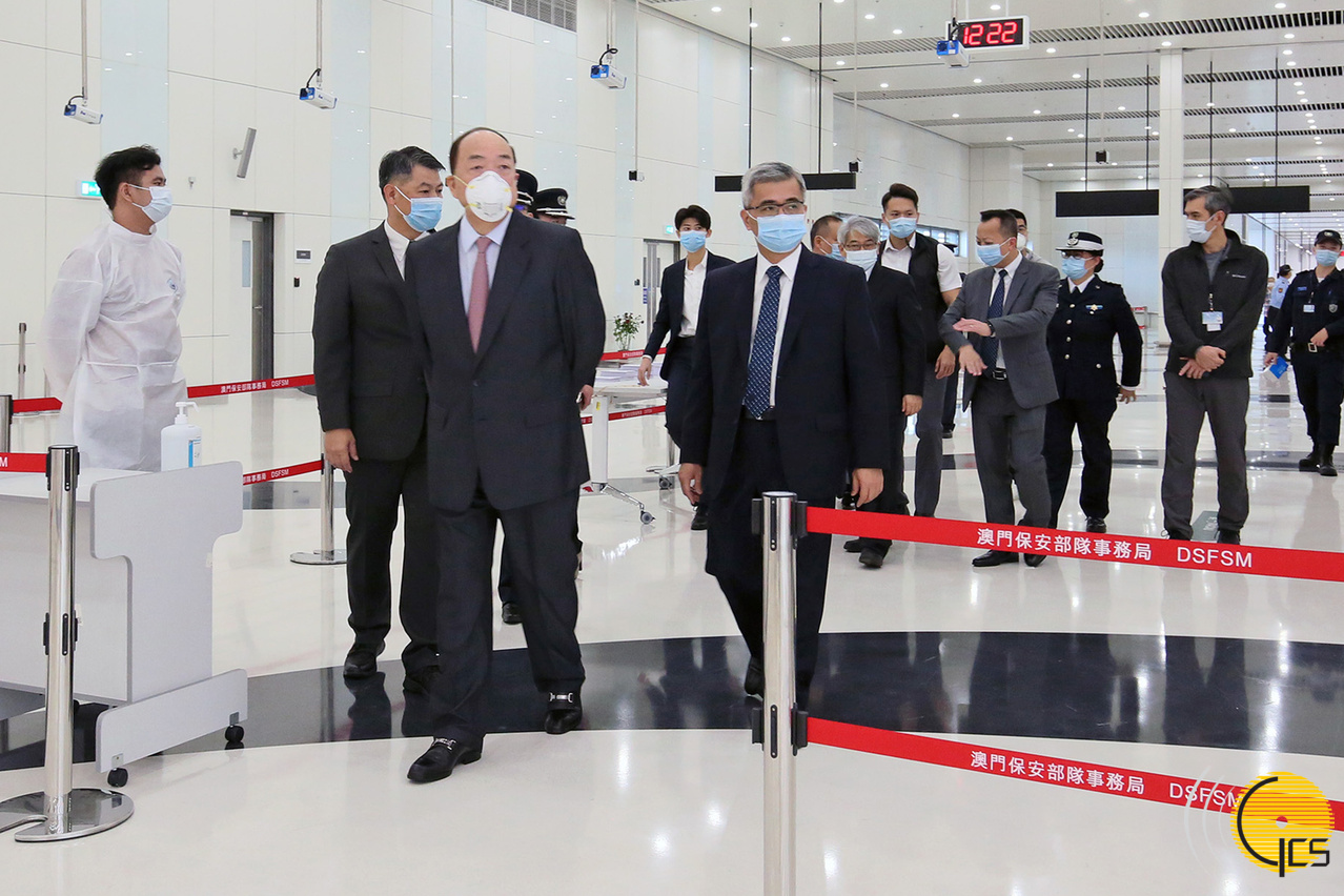 • The Chief Executive, Mr Ho Iat Seng, visits the Macao checkpoint serving the Hong Kong-Zhuhai-Macao Bridge to gain better understanding on operations of temperature-monitoring screening.