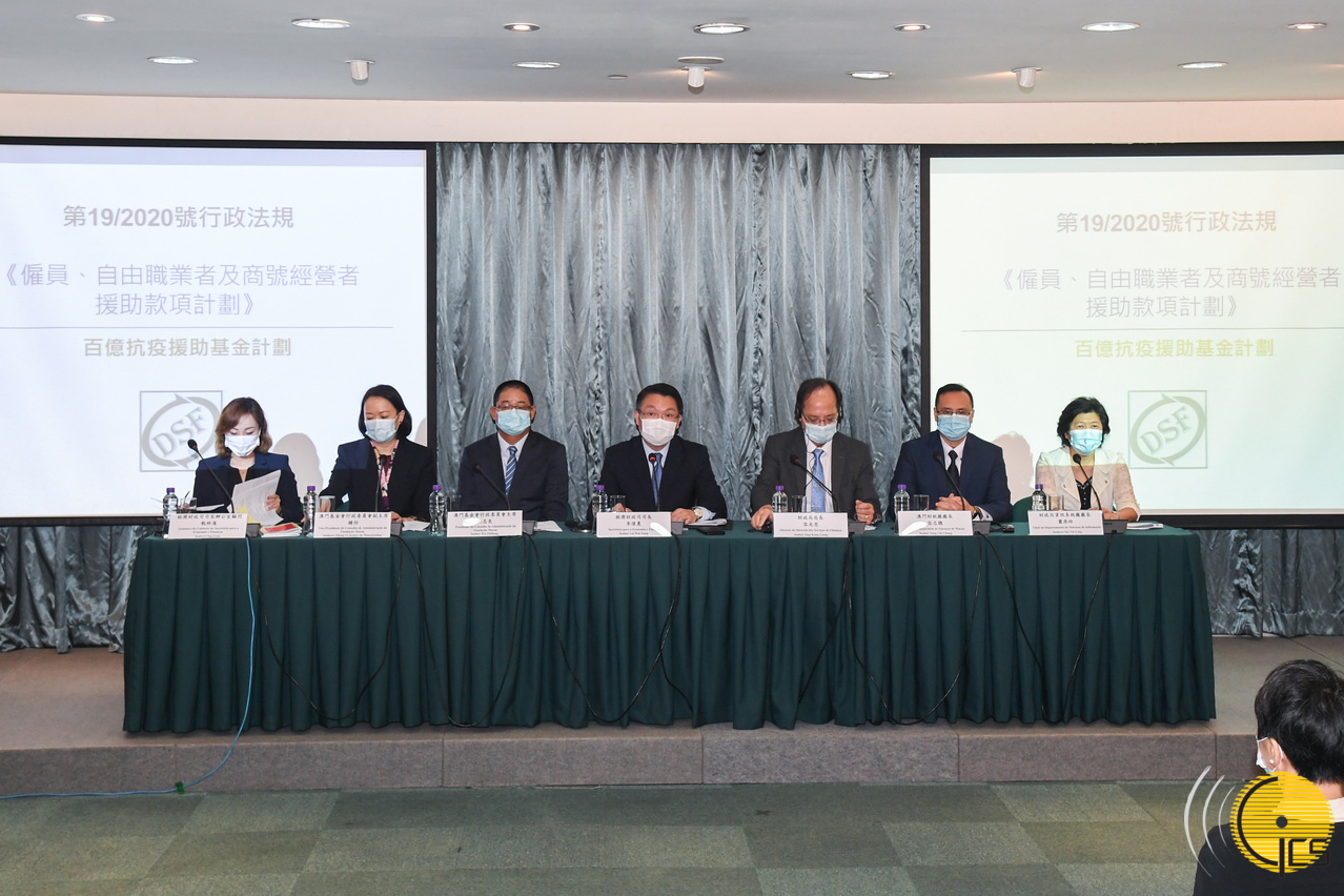 • The Secretary for Economy and Finance, Mr Lei Wai Nong, chairs a press conference on arrangements under a scheme regarding financial support for employees, self-employed professionals, and company operators.