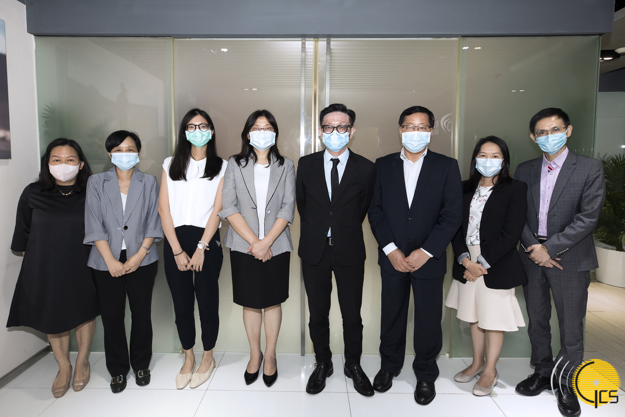 • The Director of the Government Information Bureau, Ms Chan Lou (4th left), poses for a group photograph with the Director of Exmoo News, Mr Lao Heong Ming (5th left).