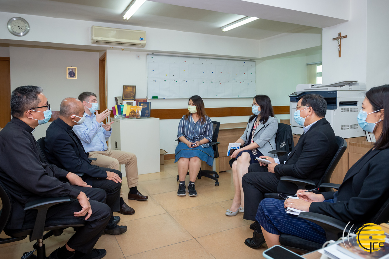 • The Director of the Government Information Bureau, Ms Chan Lou (centre), and the Deputy Director, Mr Wong Lok I (1st right), pose for a group photograph with the Director of O Clarim, Pe. José Mario O. Mandía (3rd right).