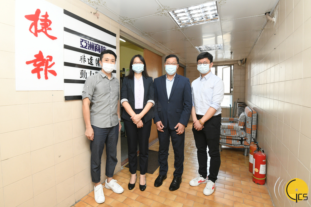 • The Director of the Government Information Bureau, Ms Chan Lou (2nd left), and the Deputy Director, Mr Wong Lok I (2nd right), pose for a group photograph with the Director of Click2Macau, Mr Kuan Kin Sang (1st left), and the newspaper's Deputy Director, Mr Lei Iok Lam.