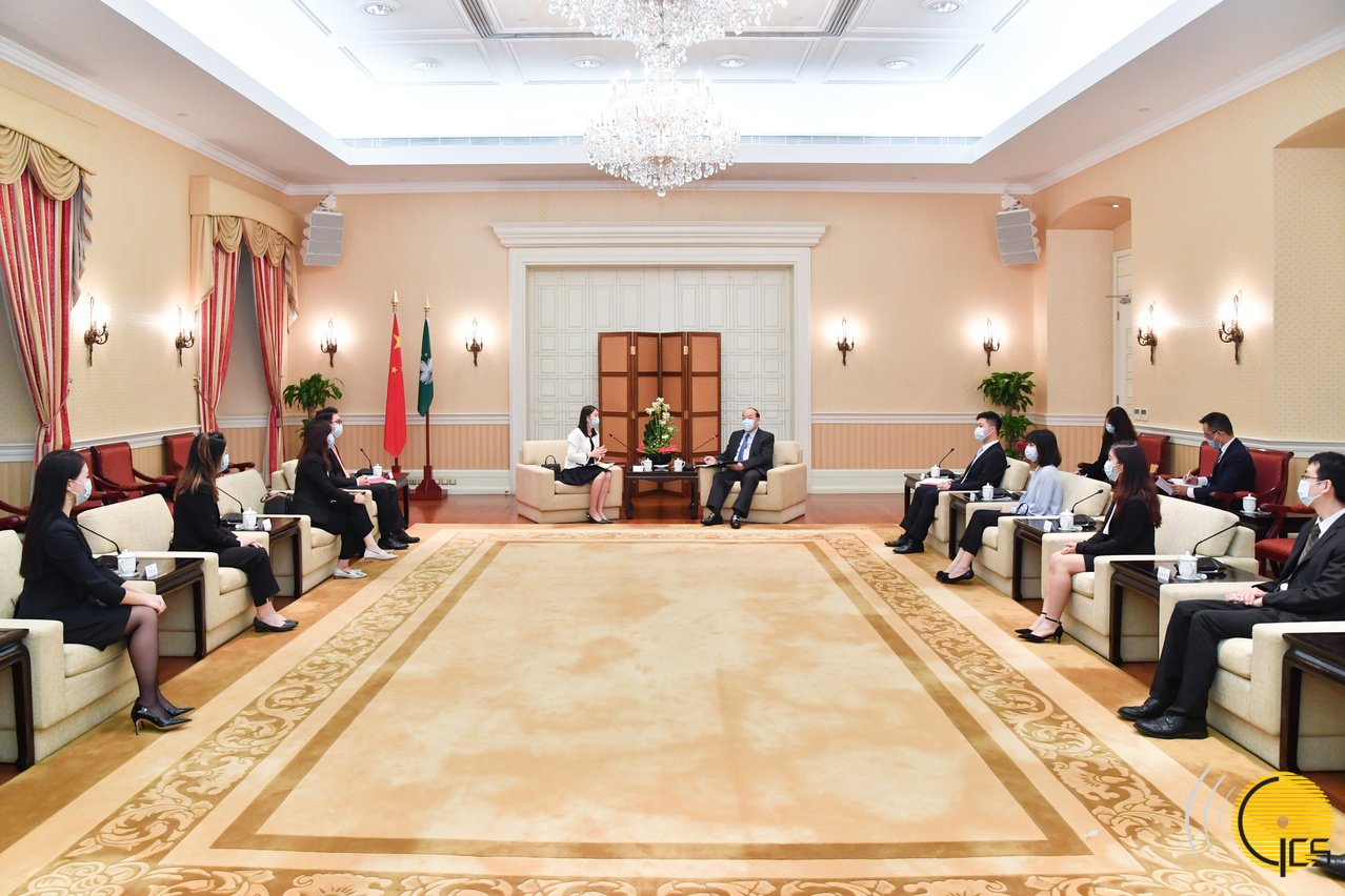 • The Chief Executive, Mr Ho Iat Seng, meets with the Chairperson of General Assembly of the General Association of Chinese Students of Macau, Ms Tai Ka Peng, to exchange views on the association's works and education and career development of young people.