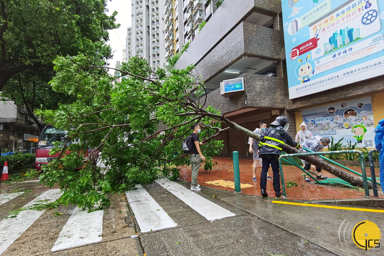 • The personnel staff from the Public Security Police Force cooperate with the residents to clear the road obstacles.