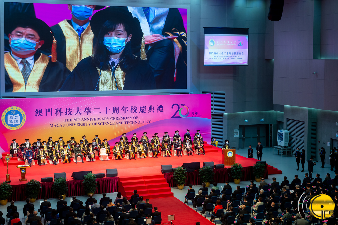 On behalf of the Chief Executive, the Secretary for Social Affairs and Culture, Ms Ao Ieong U, attends the 20th anniversary ceremony of Macau University of Science and Technology.