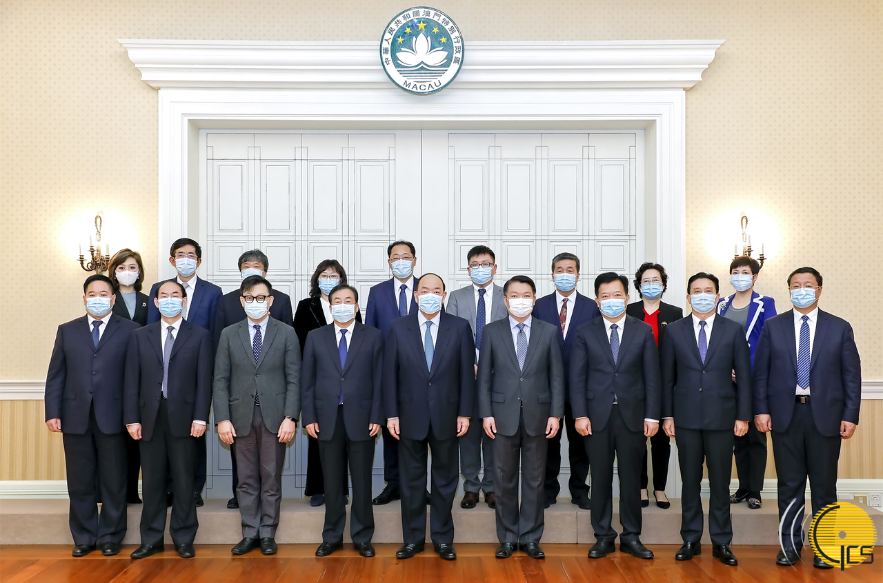 • The Chief Executive, Mr Ho Iat Seng, poses for a group photograph with member of the Standing Committee of CPC Shandong Provincial Committee and Secretary of the CPC Jinan Municipal Committee, Mr Sun Licheng, , during a meeting at the Government Headquarters.