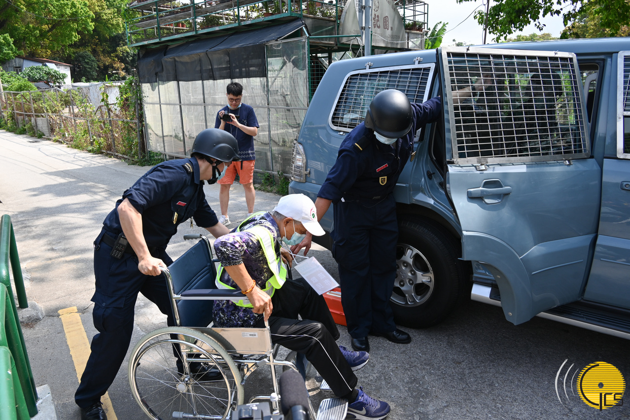 • "Crystal Fish 2021" typhoon drill – Government personnel assist a wheelchair user to evacuate to a shelter centre.