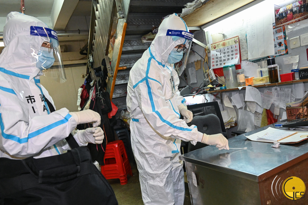 • Officers from the Health Bureau and Municipal Affairs Bureau collect on-site environmental samples.