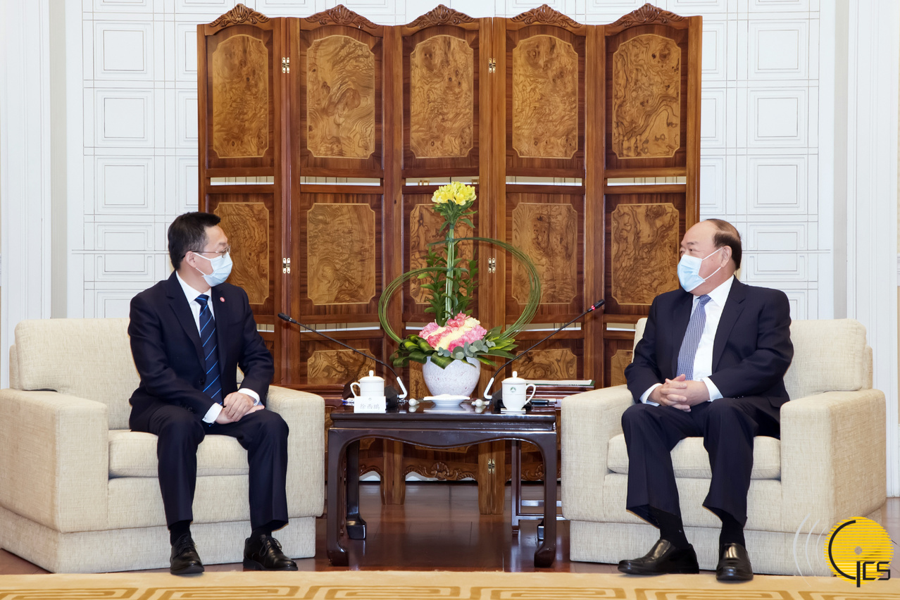The Chief Executive, Mr Ho Iat Seng, meets with the Secretary of the Party Committee of Huaqiao University, Mr Xu Xipeng, at the Government Headquarters.