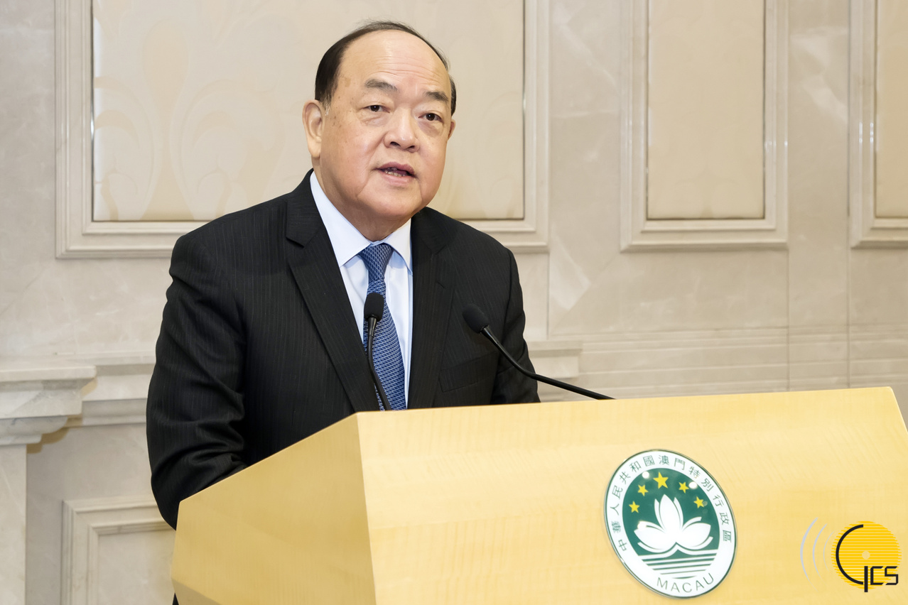 • The Chief Executive, Mr Ho Iat Seng, delivers a speech at a lunch reception for representatives of local Macanese community.