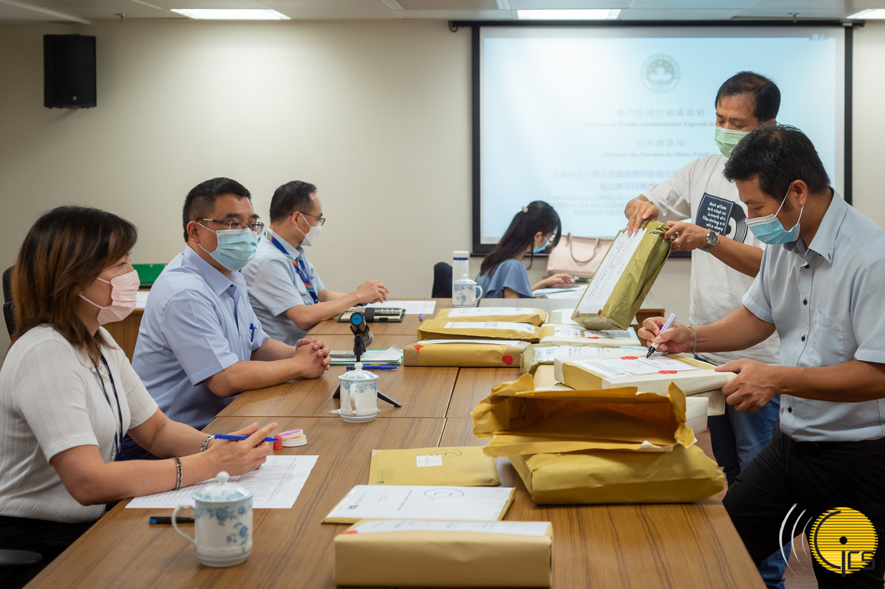 Officials of the Public Works Bureau open tender documents for construction of a bridge connecting New Urban Reclamation Zone A and Macao Peninsula (A2).