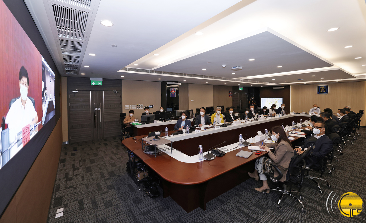 • The Chief Executive, Mr Ho Iat Seng, leads representatives of MSAR Government departments in a videoconference with officials from Zhuhai Command Center for COVID-19 Prevention and Control