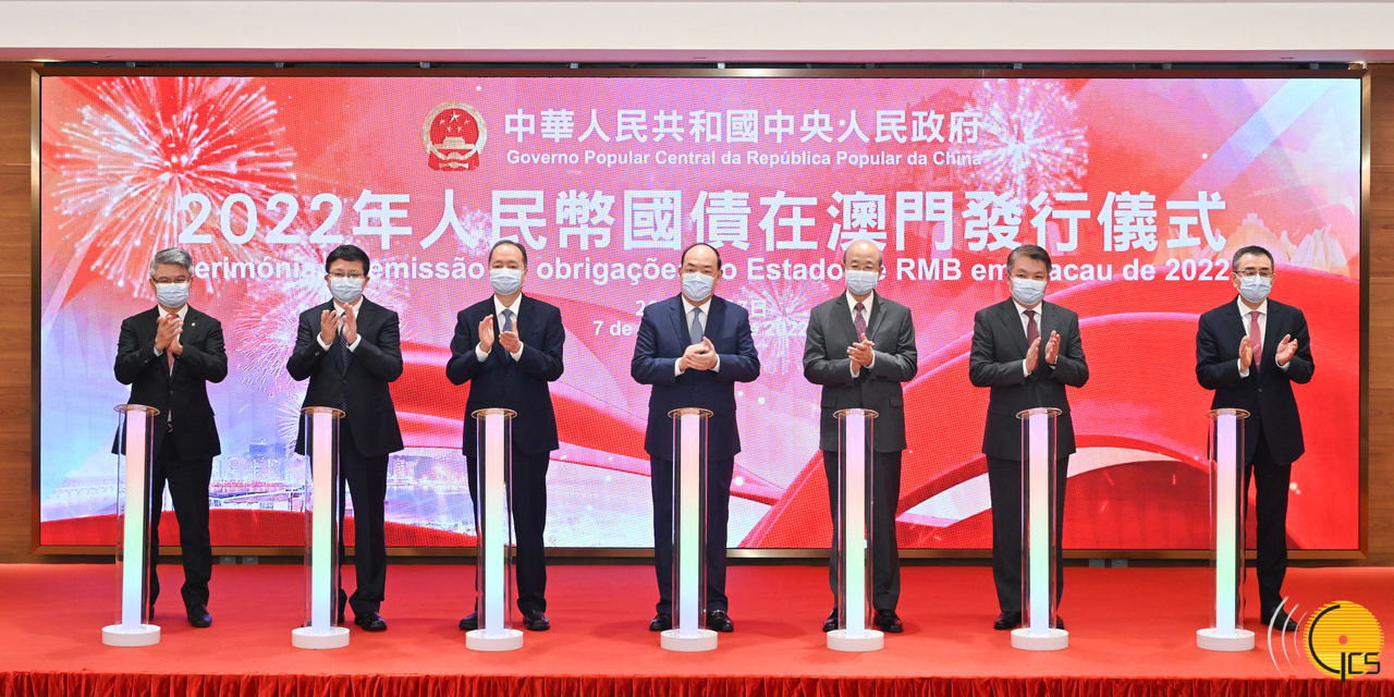 The Chief Executive, Mr Ho Iat Seng, attends the ceremony to mark the issuance in Macao by the Ministry of Finance of renminbi government bonds in 2022.