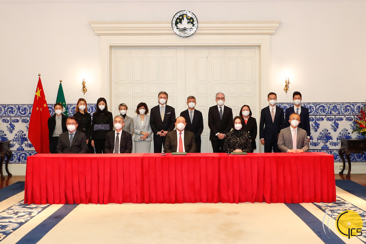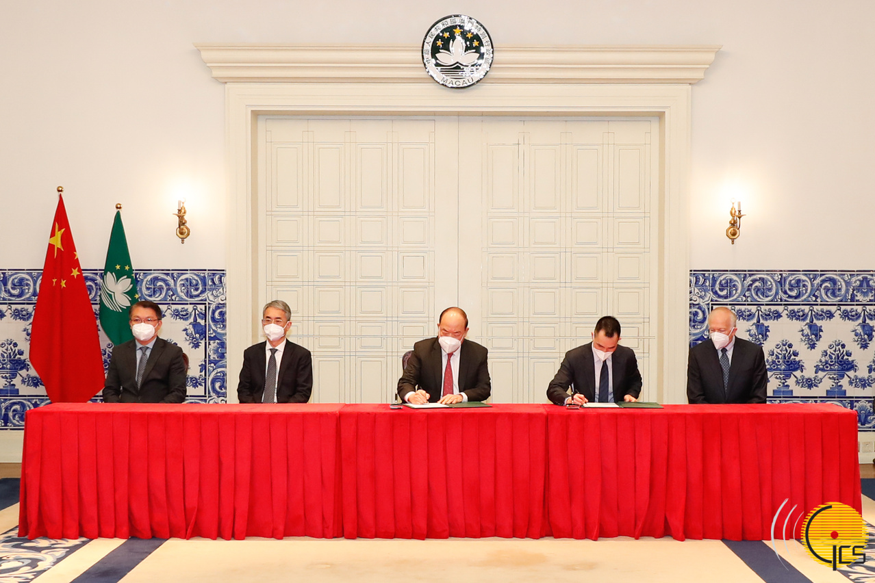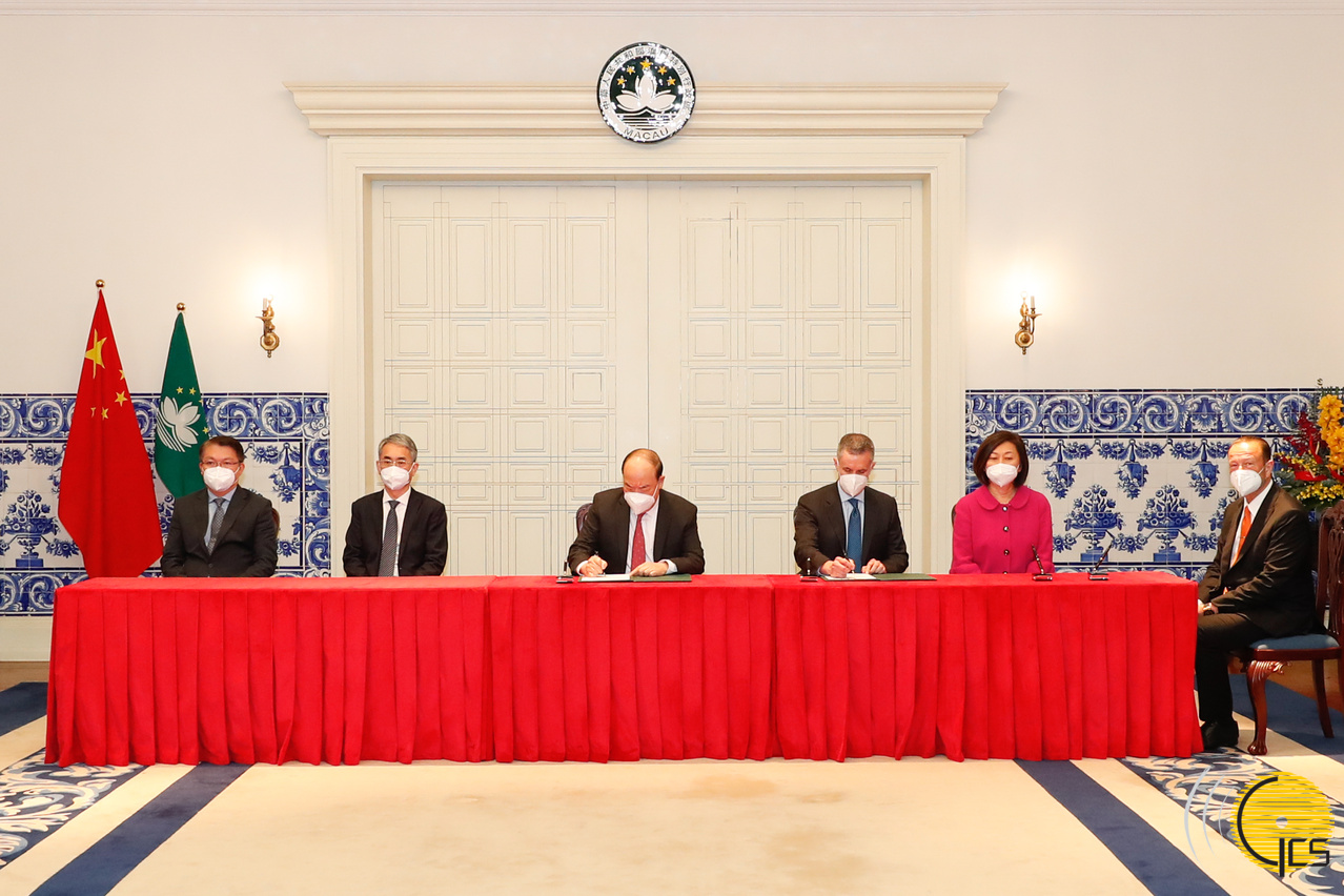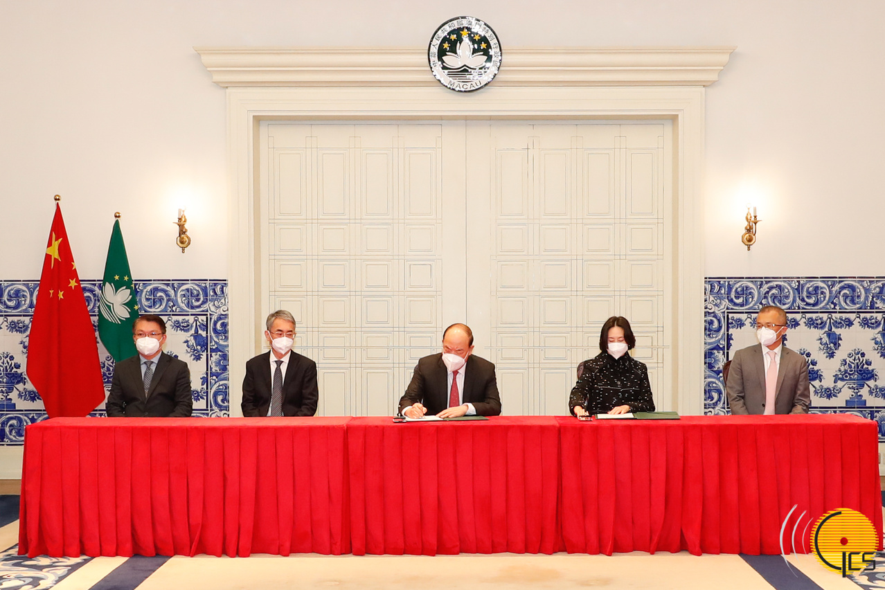 • The Chief Executive, Mr Ho Iat Seng, signs the new gaming concession contract on behalf of the MSAR with the President, Chairman of the Board and Executive Director from Venetian Macau Limited, Mr Wong Ying Wai.