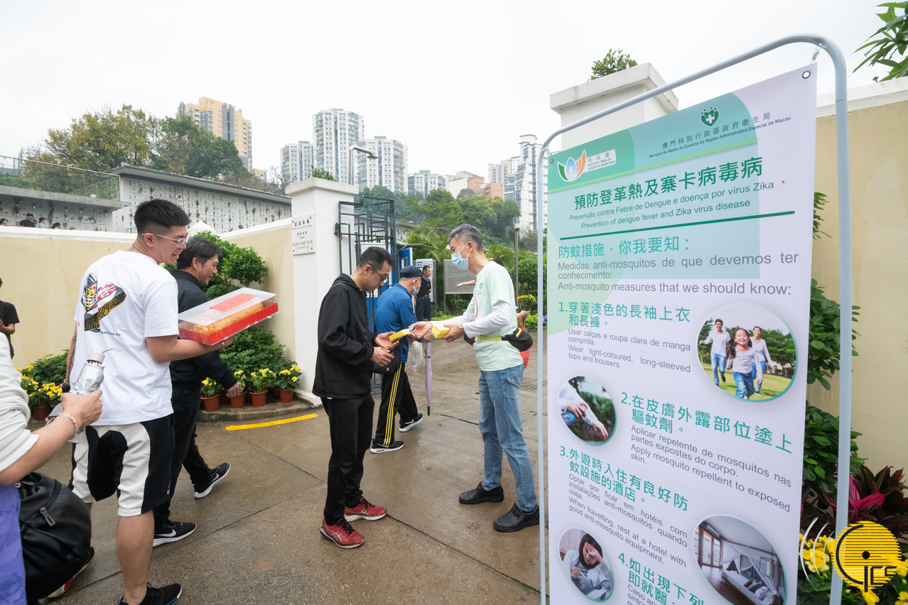 Working Group on the Prevention of Dengue Fever holds a promotional event on Ching Ming Festival, urging members of the public to stay alert on mosquito-borne diseases and take heed of removing stagnant water in household and workplace settings to stop mosquitoes from breeding.