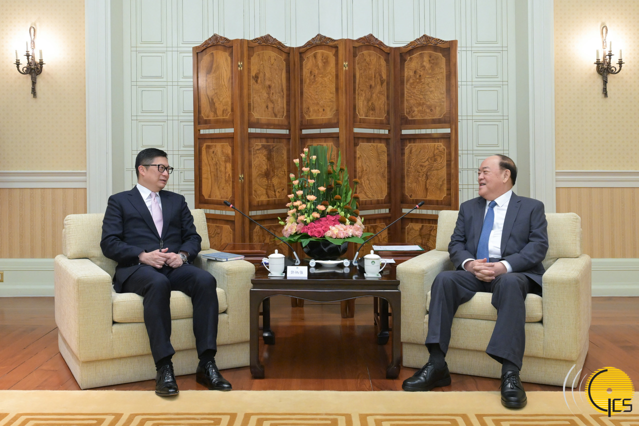 • The Chief Executive, Mr Ho Iat Seng, meets with the Secretary for Security of the Hong Kong Special Administrative Region, Mr Tang Ping-keung, at the Government Headquarters in Macao.
