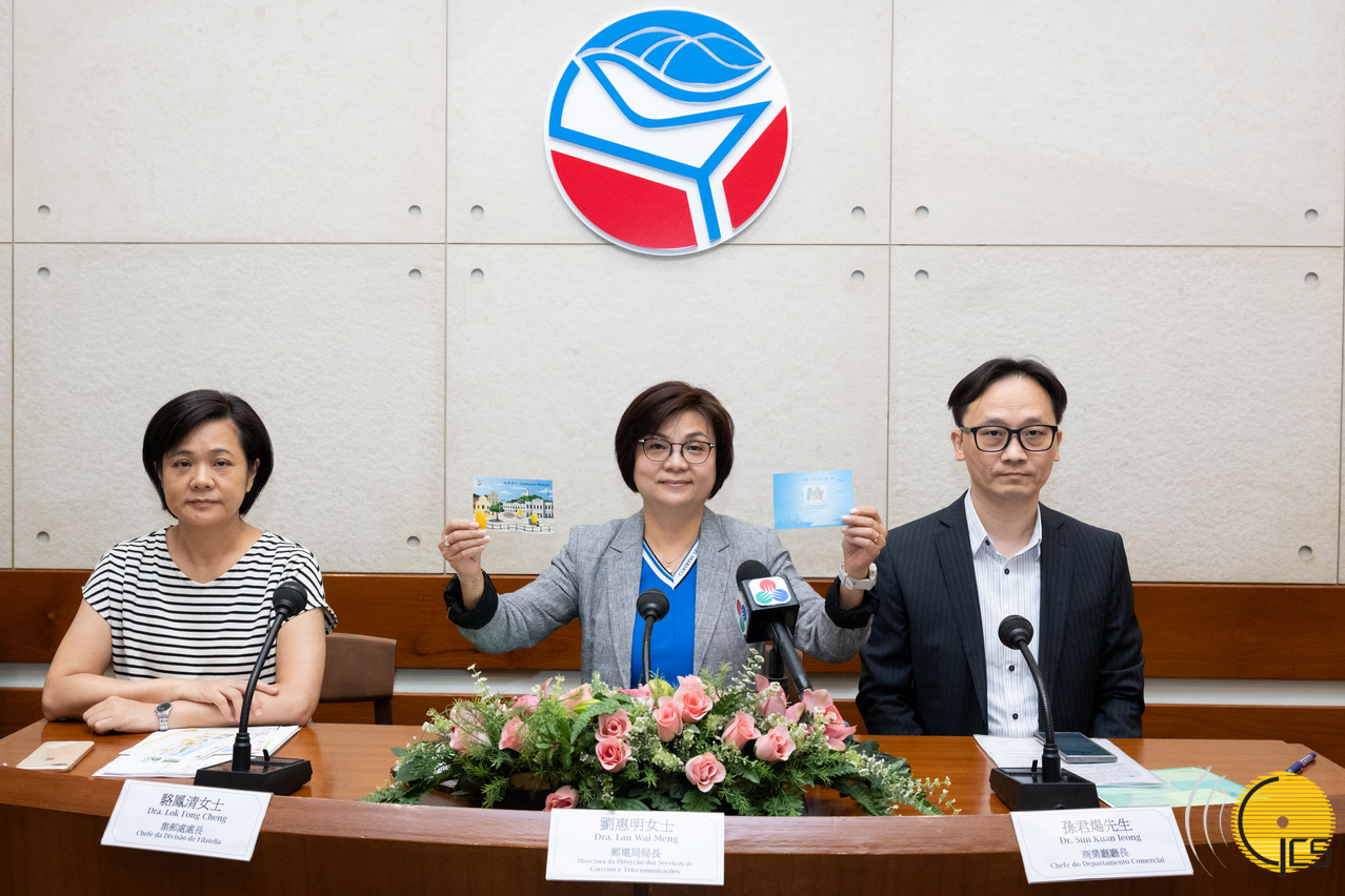 The Post and Telecommunications Bureau hosts a press conference on the issuance of two stamp sets titled respectively "Explore Macao" and "The 10th Anniversary of the Belt and Road Initiative".