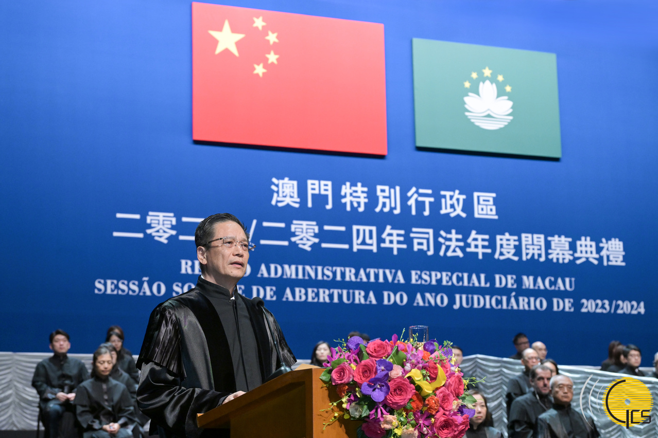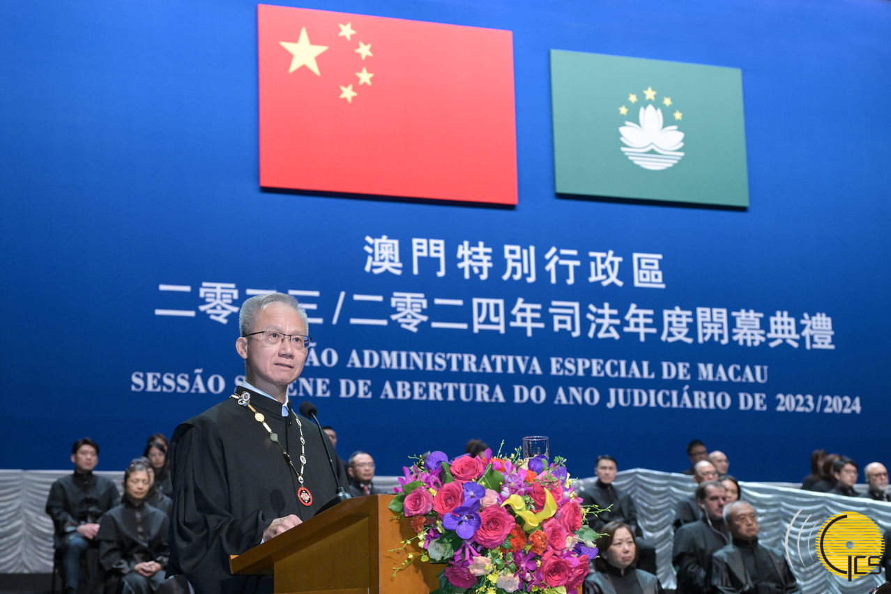 • The President of the Court of Final Appeal, Mr Sam Hou Fai, delivers a speech at the opening ceremony of the 2023/2024 Judicial Year of the Macao Special Administrative Region.