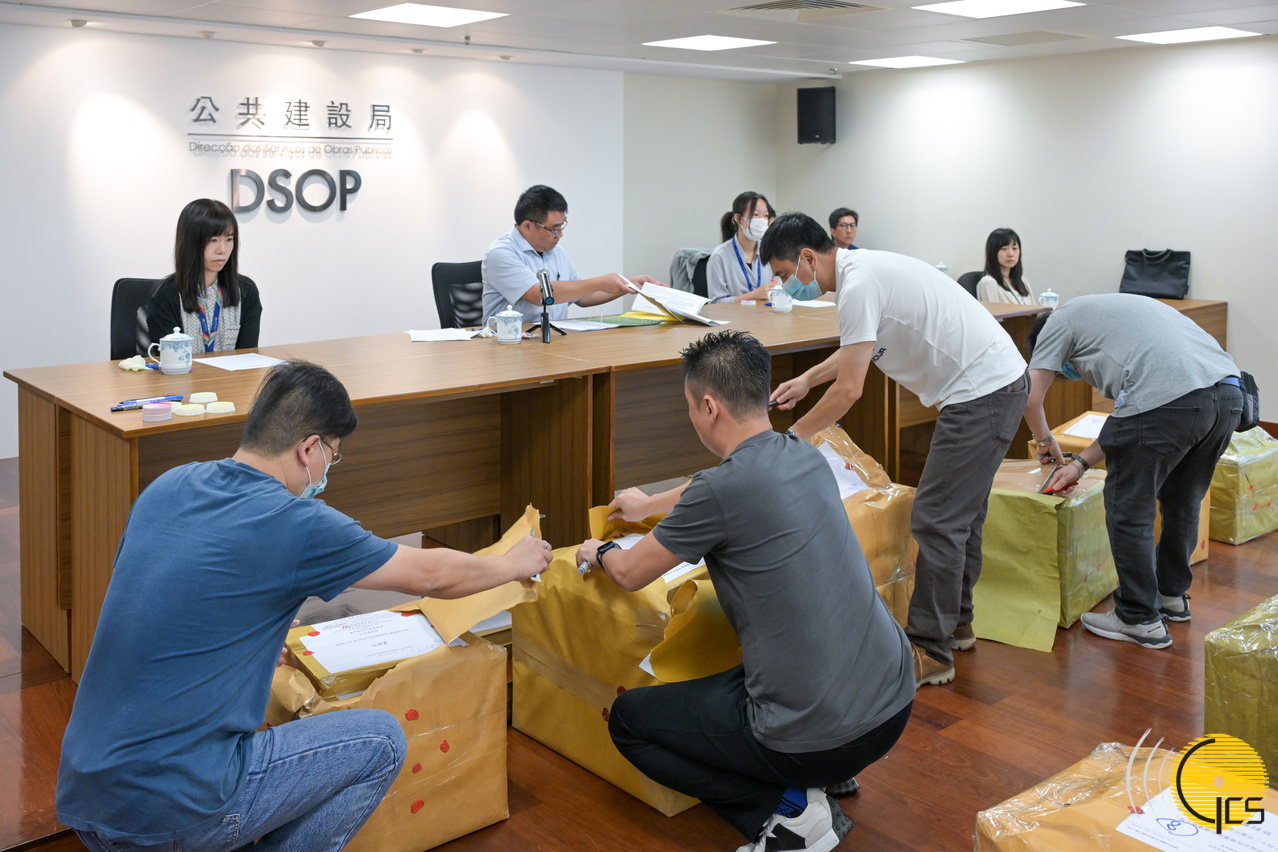 • Officials of the Public Works Bureau open tender documents for the design and construction of public housing at Lot B7 in New Urban Zone Area A.