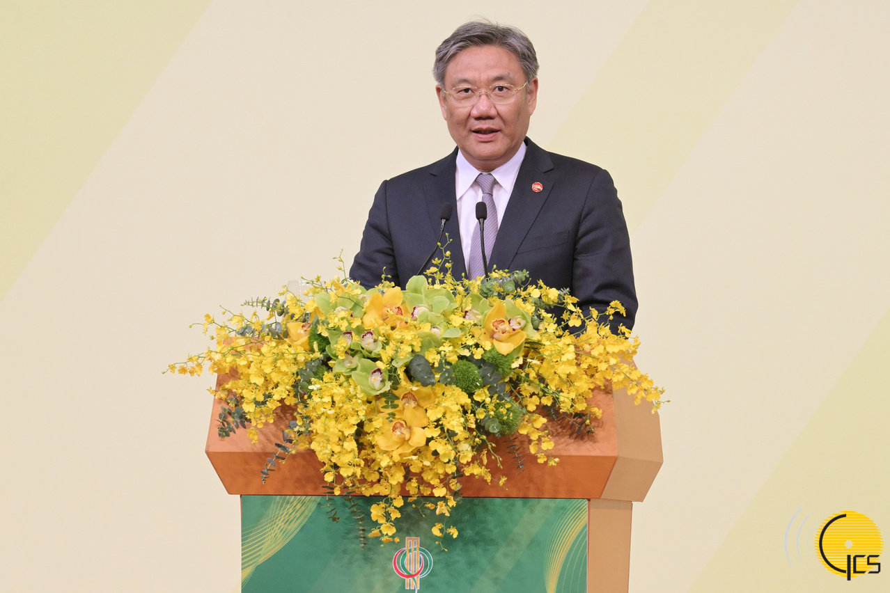 • The Chief Executive of the Macao Special Administrative Region, Mr Ho Iat Seng, delivers a speech during a welcoming dinner for the 6th Ministerial Conference of the Forum for Economic and Trade Co-operation between China and Portuguese-speaking Countries (Macao).