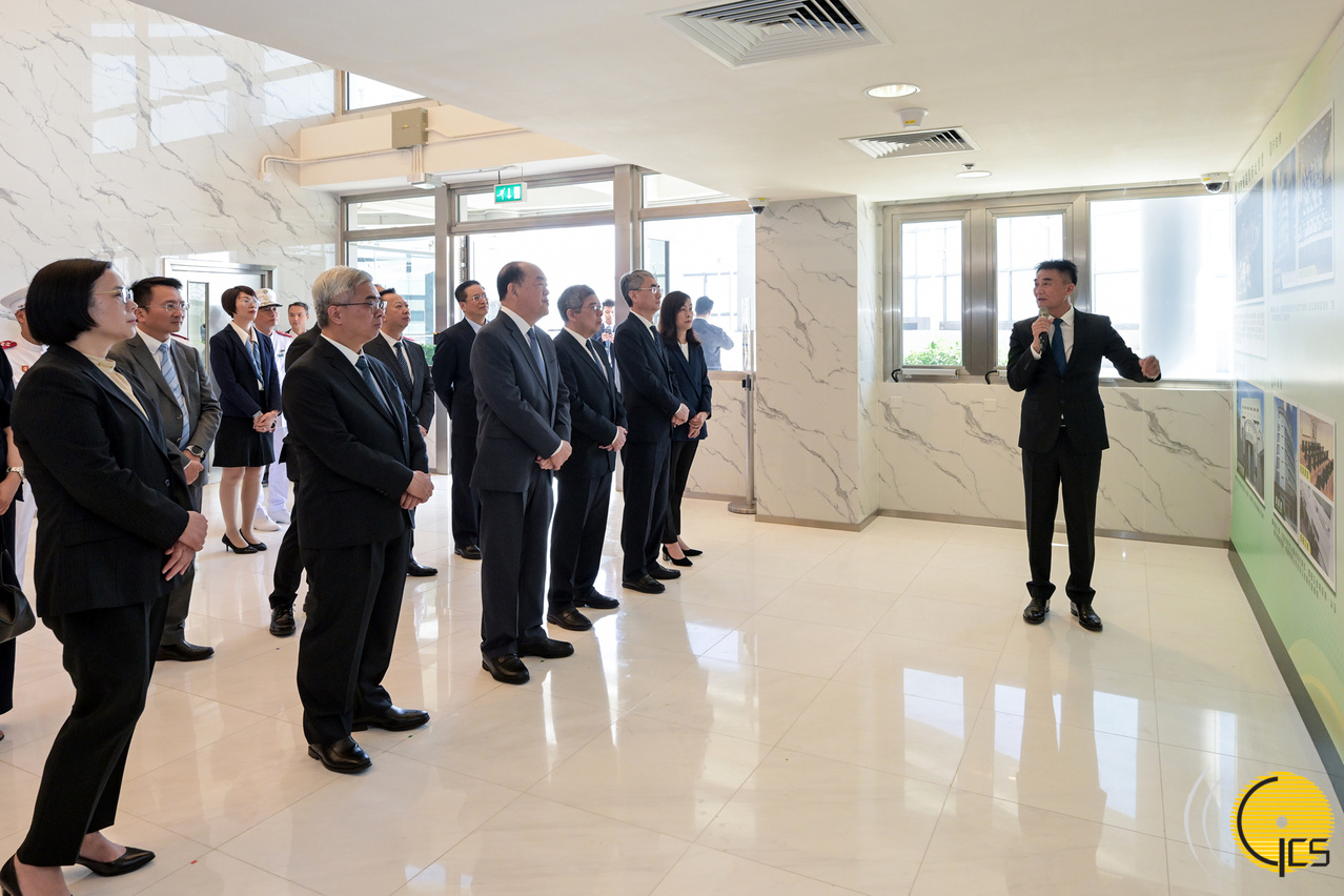 • The Chief Executive, Mr Ho Iat Seng, presides over the plaque unveiling ceremony of a new building of the Correctional Services Bureau .