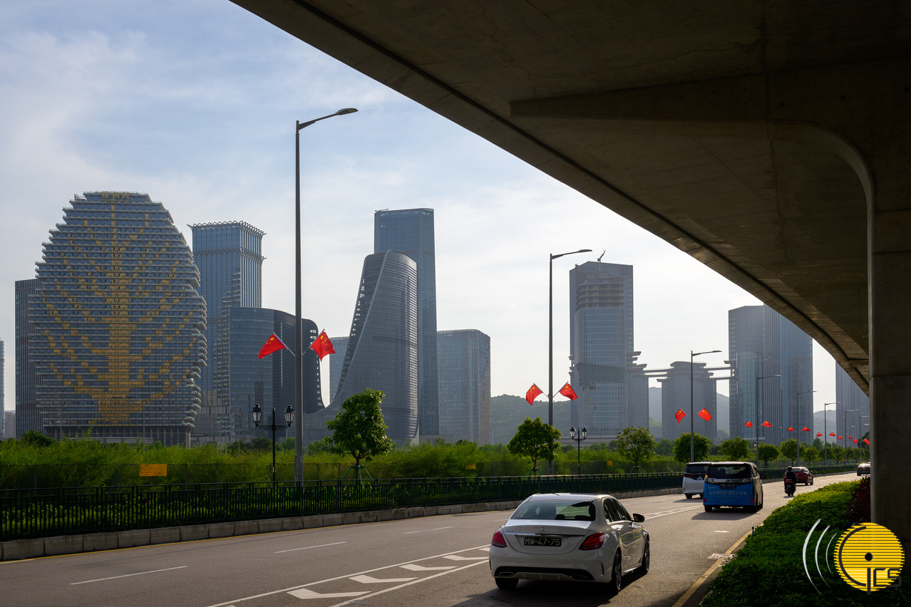 • Looking from Taipa towards Hengqin, a row of national flags can be seen flying vigorously, marking the National Day celebration. The gesture recognises the strong support from the Central Government for Macao's work in promoting the construction of the Guangdong-Macao Intensive Cooperation Zone in Hengqin.
