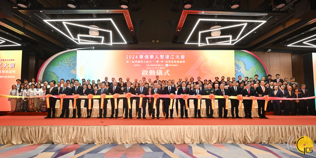 The Chief Executive, Mr Sam Hou Fai, Vice Chairman of the National Committee of the Chinese People's Political Consultative Conference, Mr Ho Hau Wah, and the Director of the Liaison Office of the Central People’s Government in the MSAR, Mr Zheng Xincong, attend the 2024 Macao gathering of overseas Chinese and the 2nd Conference on Overseas Chinese Supporting High-quality Development of the Belt and Road Initiative, in celebration of the 75th anniversary of the founding of the People's Republic of China, the 25th anniversary of the establishment of the Macao Special Administrative Region, and the 56th anniversary of the Macao Federation of Returned Overseas Chinese.