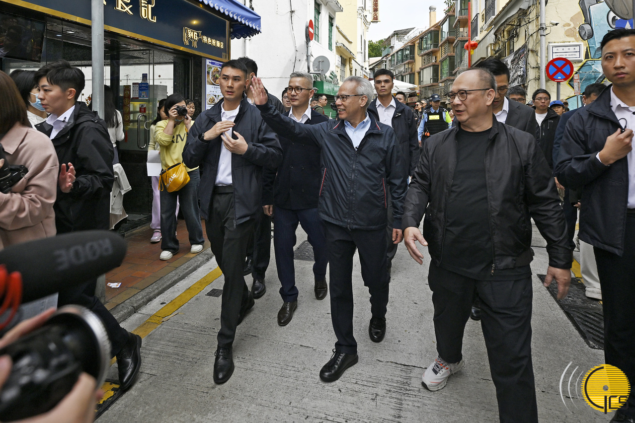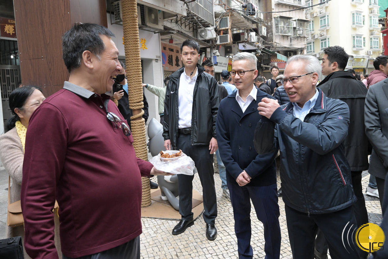 • The Chief Executive, Mr Sam Hou Fai, visits Temporary Pedestrian Zone in Taipa Village during Chinese New Year, extending festive greetings to passers-by and merchants.