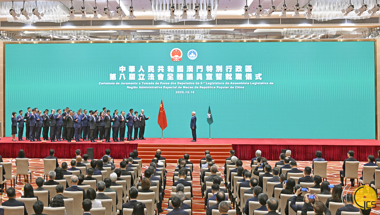 • The swearing-in ceremony of members of the eighth Legislative Assembly of the Macao Special Administrative Region is held at the China-Portuguese-speaking Countries Commercial and Trade Service Platform Complex.