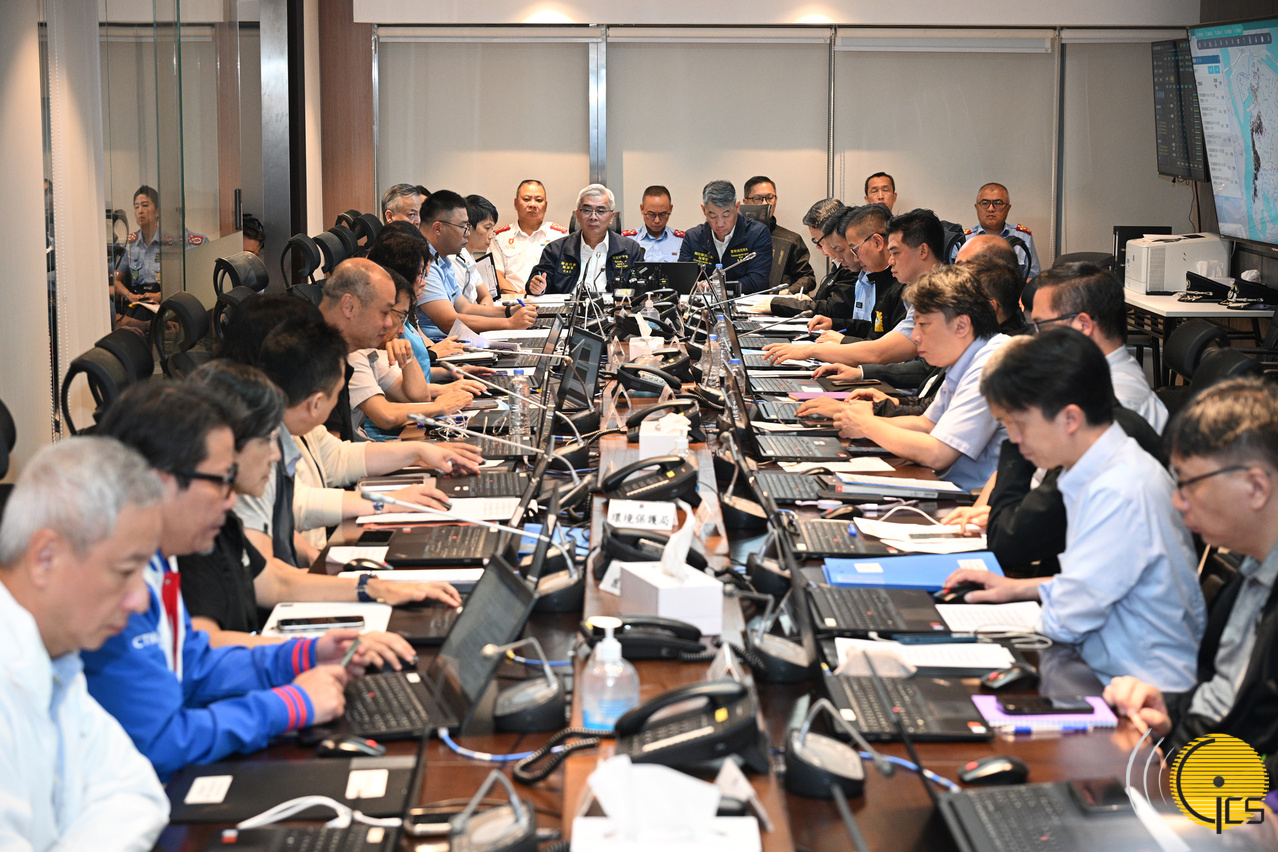 • The Secretary for Security and Commander of Joint Civil Protection Operations, Mr Wong Sio Chak, receives a briefing at the Civil Protection Operations Centre and directs the city's response to passage of Super Typhoon Ragasa.