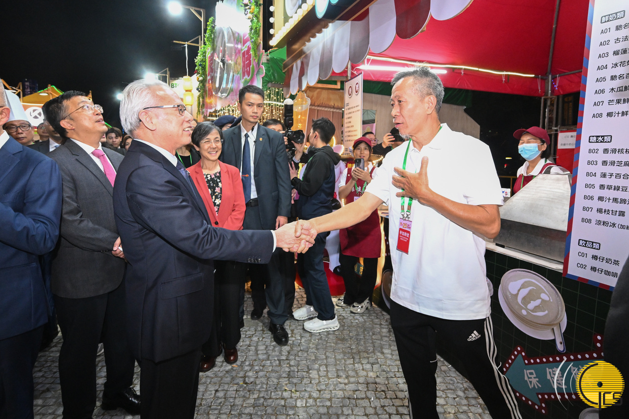 • The Chief Executive, Mr Sam Hou Fai, tours stalls and talks to vendors at the 25th Macao Food Festival.