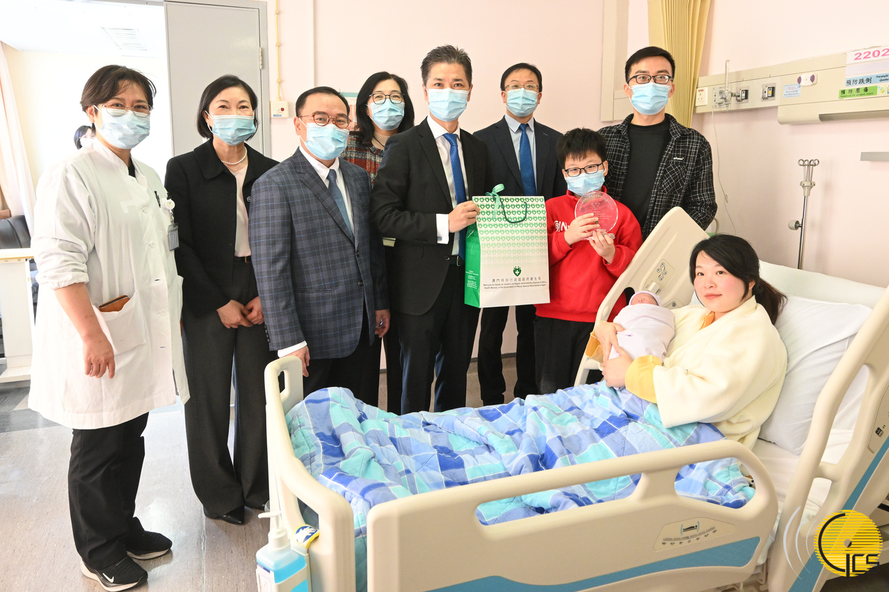 • Representatives of the Health Bureau visit the first newborn baby of 2026 in the Conde S. Januário Hospital.