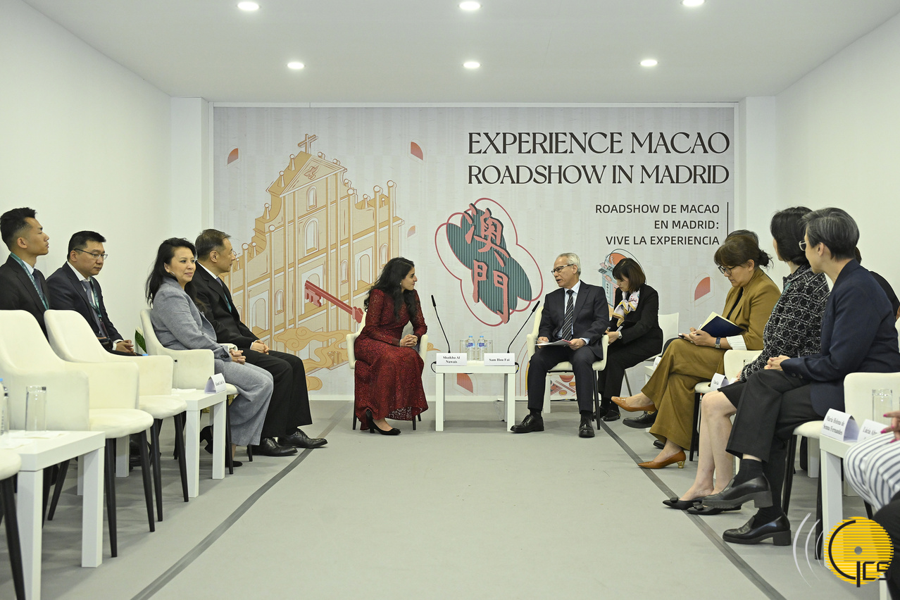 • The Chief Executive, Mr Sam Hou Fai, meets with the Secretary-General of the United Nations World Tourism Organisation, Ms Shaikha Al Nuwais, during a visit to Madrid, Spain.