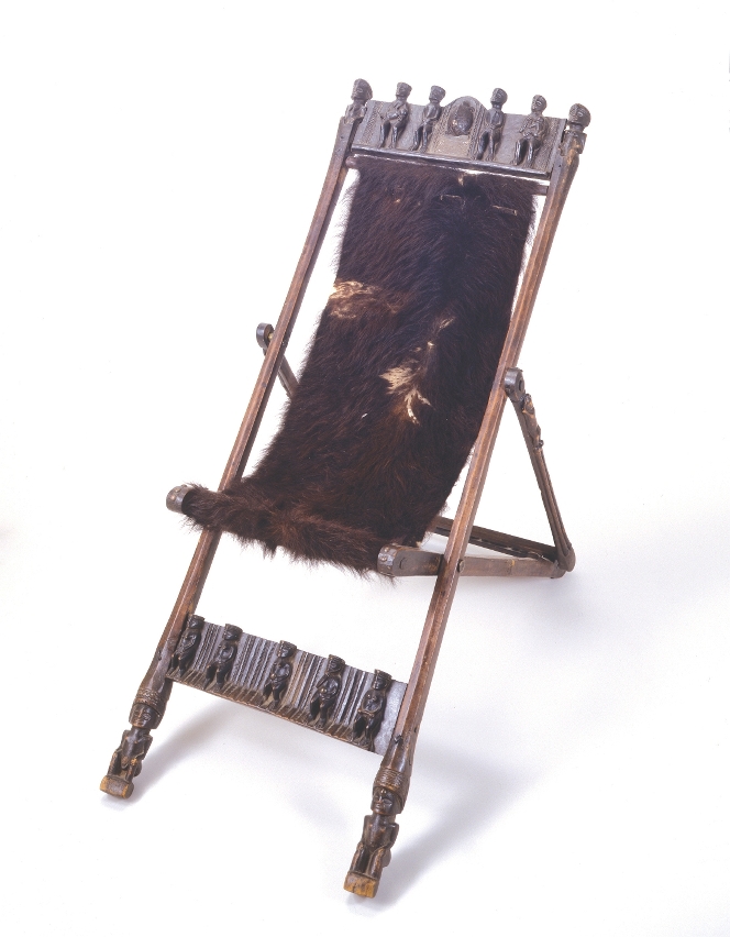 A 'Chitwamo' throne made of wood, metal and animal fur, made by the Lunda people, who were in Angola as well as other countries