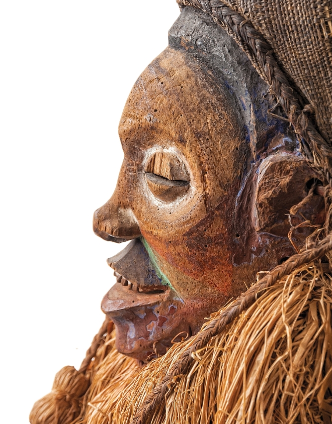 The masks of the Chokwe people, which often include real hair, are also beautifully crafted in wood. “It is important to understand,” says Dias, “that these masks often have a mystic dimension, representing the spirit world. They are worn by both genders in rituals for fertility and prosperity.” The Chokwe people, as many other ethnic groups, move around regardless of political borders as they existed before those borders were in place. The Kongo people can also be found in both Angola and Congo. However, despite similarities in the geographical regions, the art from these two peoples is different, as can be seen from the main image on p33.