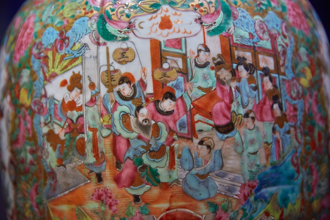 A close-up of a ‘guangcai’ vase from the late 19th century. The vase is 77.5cm high.