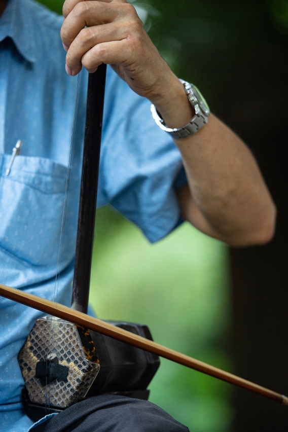 The gaohu instrument (pictured here) is one of the main instruments used during Cantonese Naamyam performances | Photo by Cheong Kam Ka