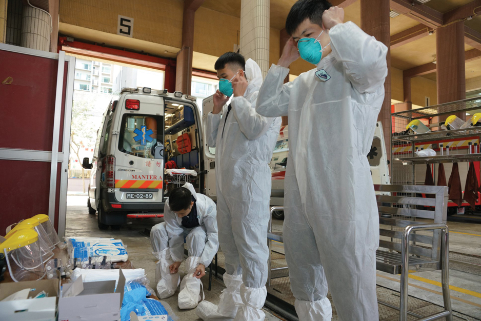 Ambulance personnel gear up in Macao | Photo by Government Information Bureau (GCS)