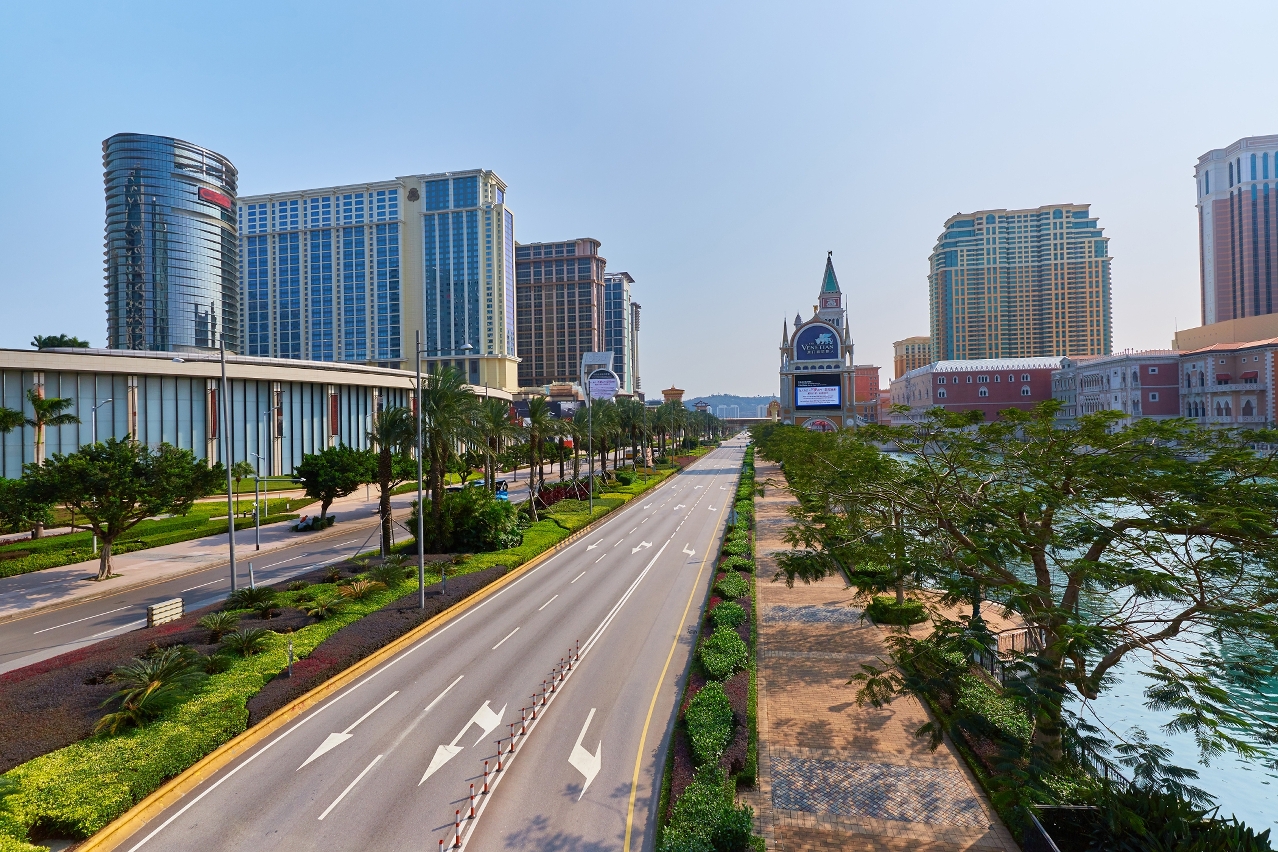 A deserted Cotai Strip during the closure of Macao’s entertainment complexes | Photo by António Sanmarful