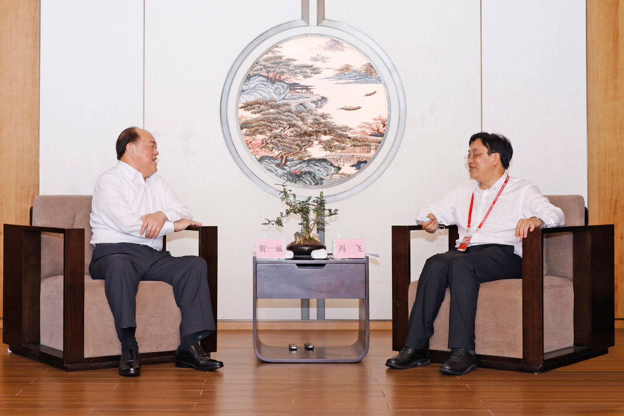 Ho Iat Seng meets with Governor of Hainan province, Feng Fei 丨 Photo by Government Information Bureau